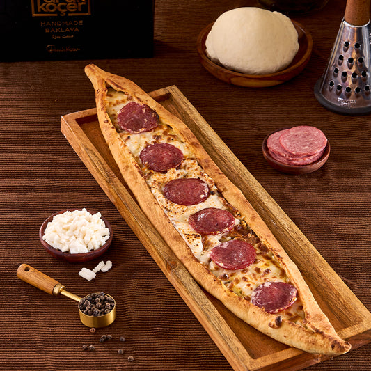 Turkish Pide with Salami & Cheese